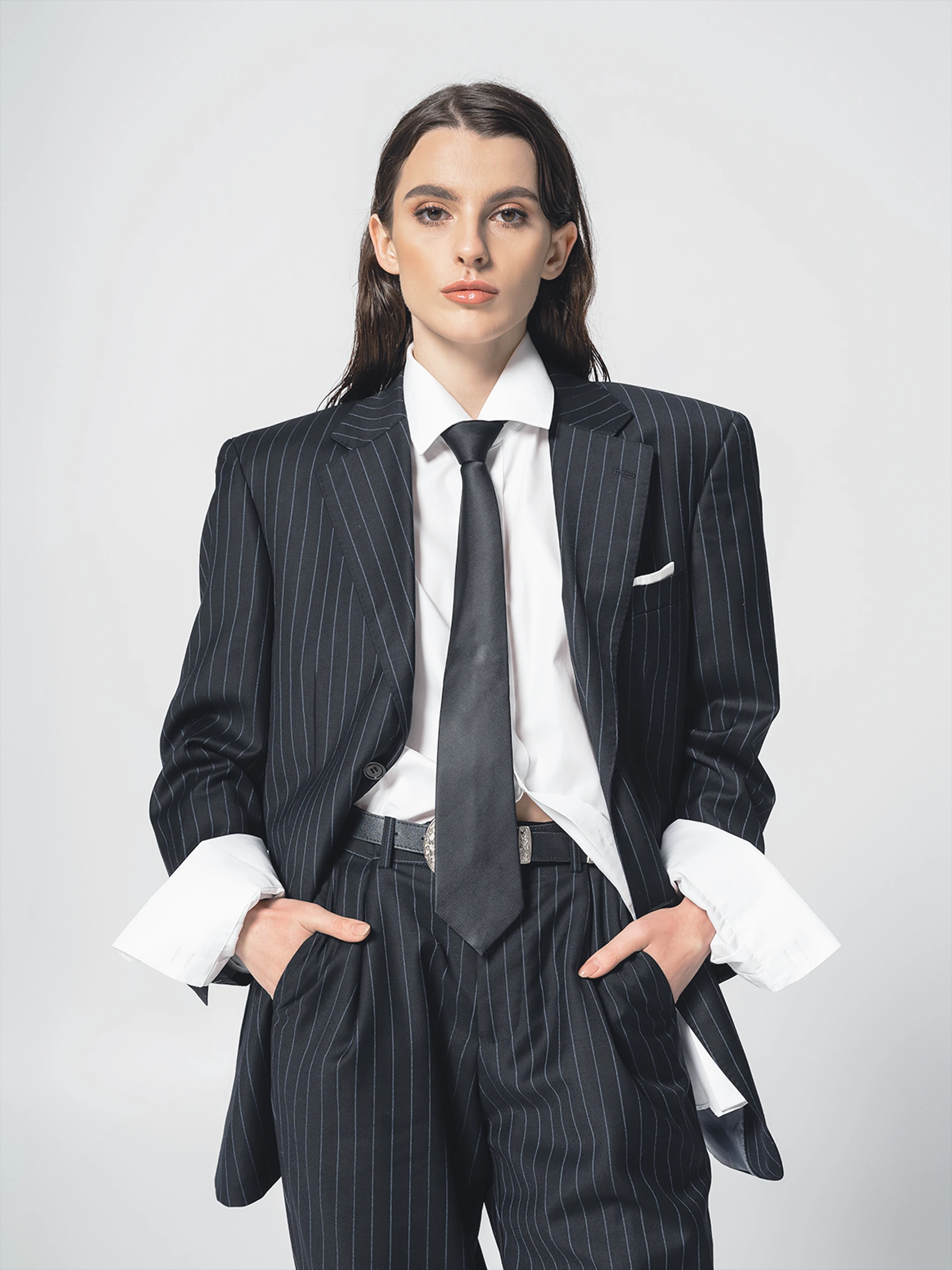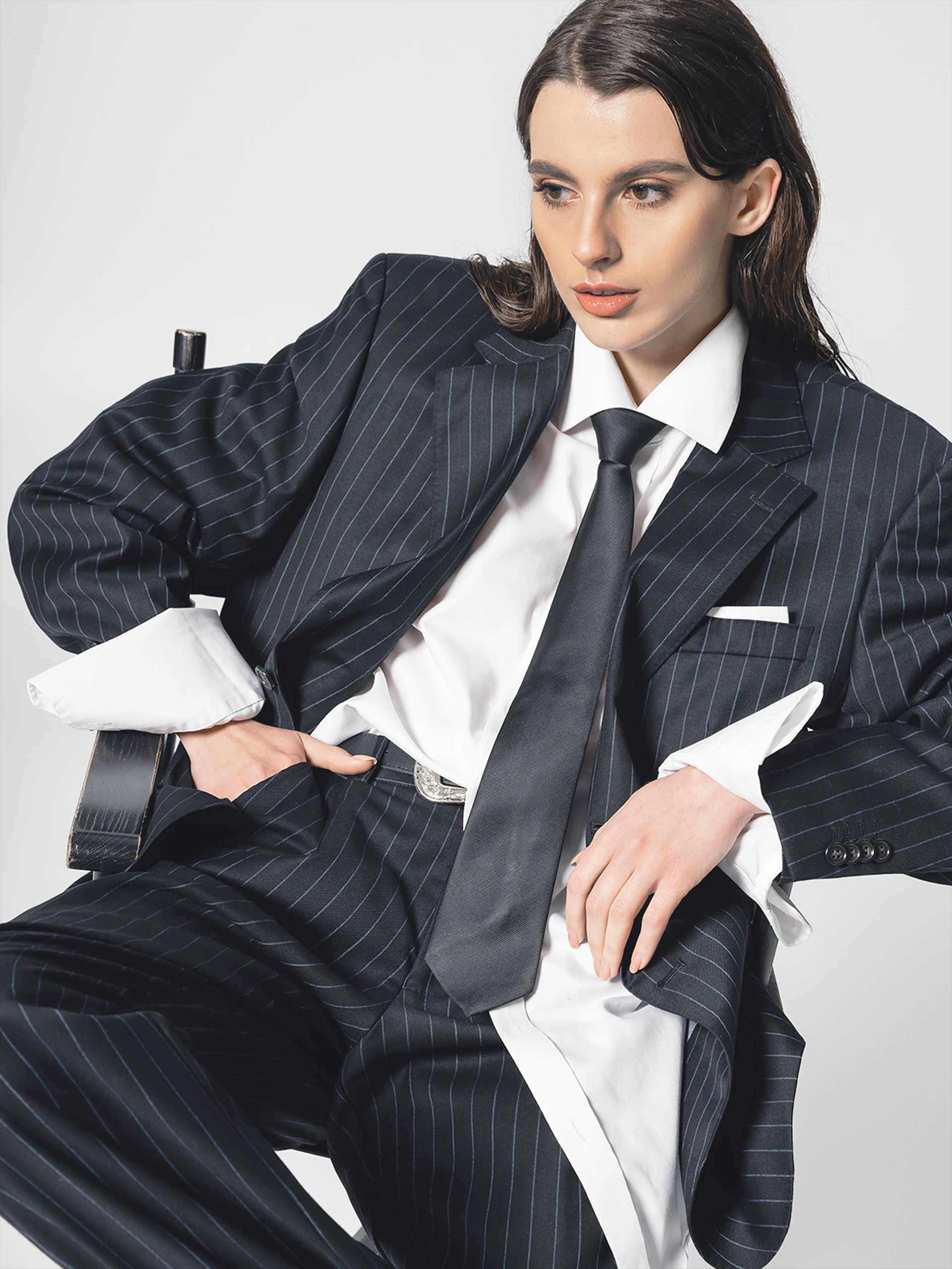 The God Father Suit Set reimagines classic power dressing through a contemporary lens. Designed with exaggerated proportions and striking vertical stripes, this oversized two-piece commands attention while remaining effortlessly wearable. Made from lightweight woven fabric, it features wide-leg trousers with a high waist and a relaxed fit, offering comfort without compromising presence. Whether for bold office styling or standout street looks, this set makes a confident, stylish statement.