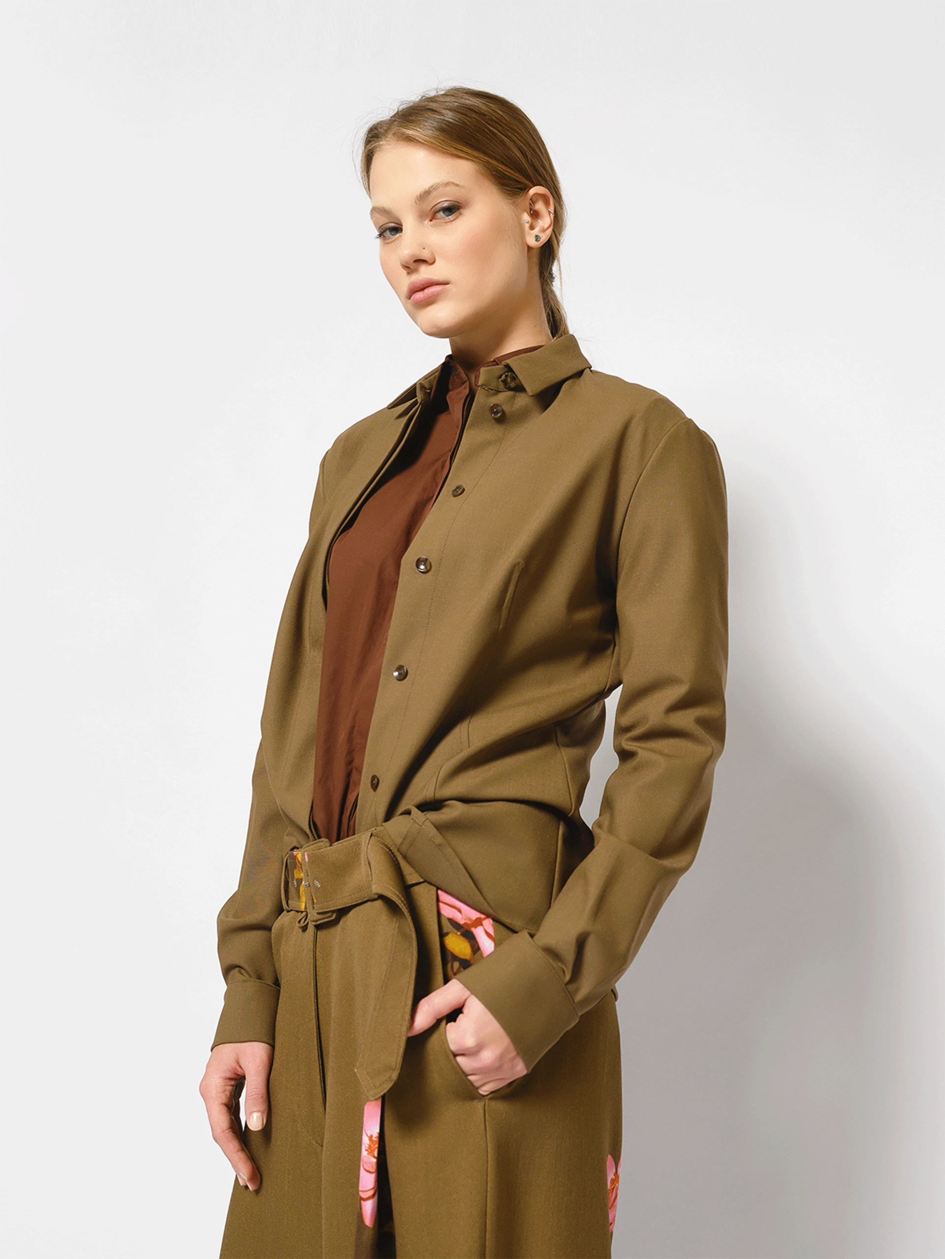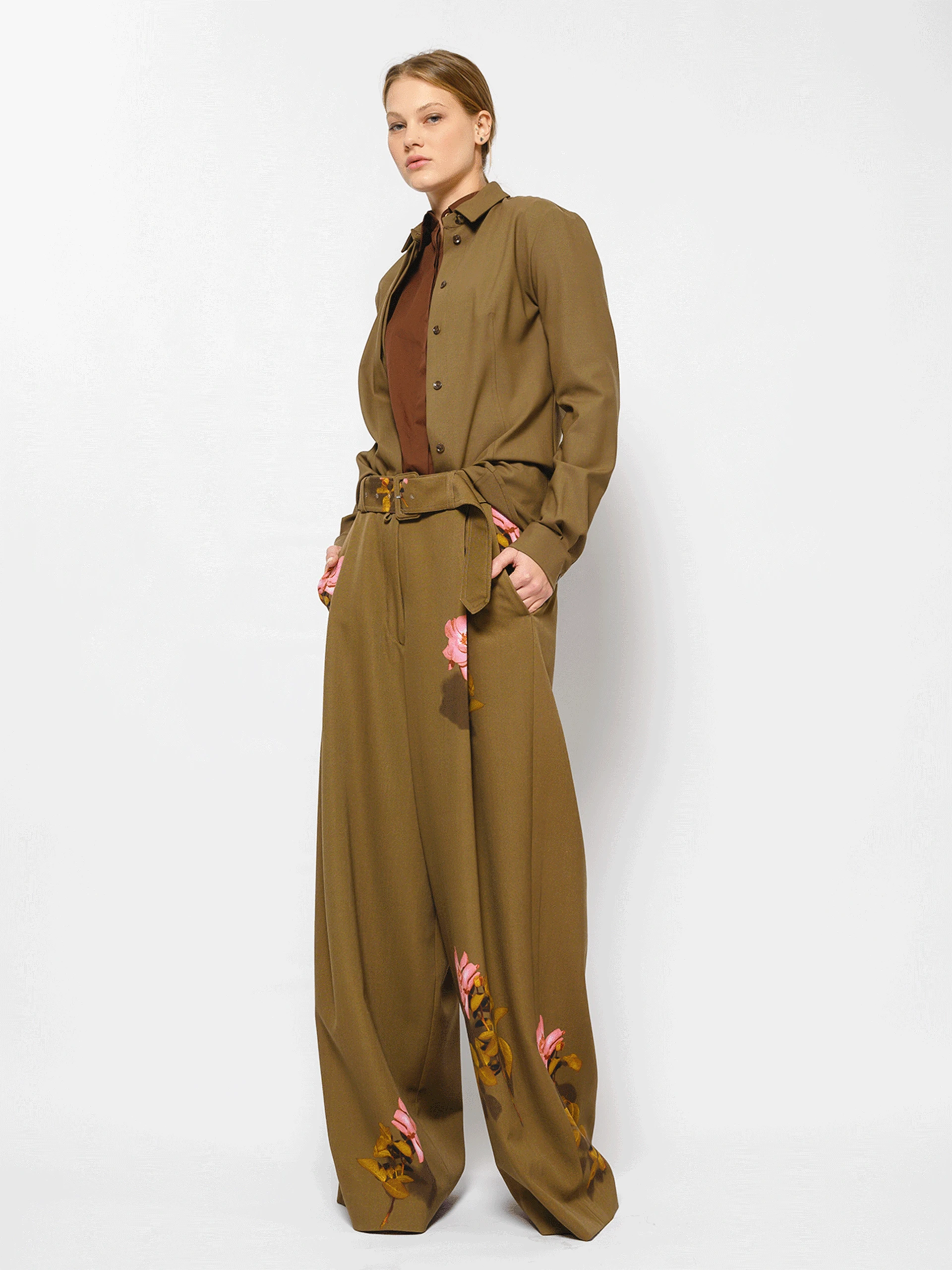 The Set Kebangkitan Musim Bunga menangkap keindahan peralihan musim dengan siluet yang terstruktur dan butiran bunga yang lembut. Kain coklat yang kaya memberikan rasa formaliti, sementara kuntum bunga merah jambu lembut yang bertaburan di bahagian atas dan seluar mengingatkan pada mekar pertama musim bunga. Direka dengan keselesaan dan keanggunan dalam fikiran, set ini menampilkan baju lengan panjang, seluar panjang yang mengalir, dan tali pinggang yang sepadan untuk menonjolkan pinggang. Sesuai untuk pejabat, majlis sosial, atau acara luar, set ini menggabungkan potongan yang halus dengan sentuhan keghairahan.